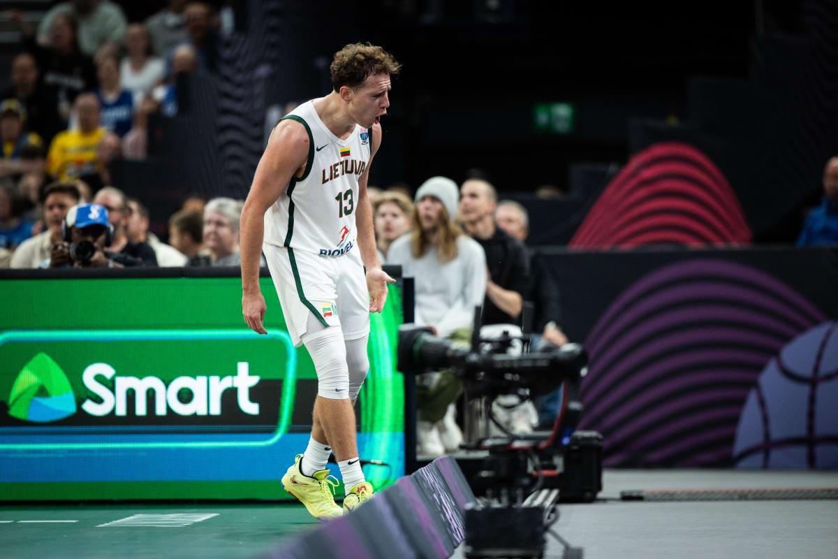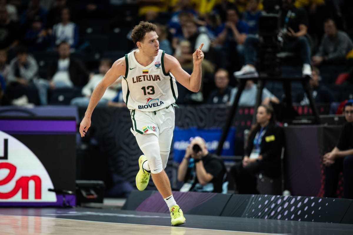 本场比赛中,立陶宛队虽然输掉了比赛,但是球队的先发控卫罗卡斯-约库巴蒂斯(Rokas Jokubaitis)的表现还是相当突出的。约库巴蒂斯全场出场29分50秒,投篮15中7,三分线外4中1,罚球6中5,得到了全队最高分20分外加3篮板7助攻1抢断的数据,还有5次失误和1次犯规,正负值为-16。约库巴蒂斯在进攻端也是通过各种方式拿下了大量的分数,他也是有着相当丰富的进攻手段,而且他也展现出了出色的传球能力和组织能力。不夸张地说,要不是有约库巴蒂斯的一系列出色表现,我们都不知道立陶宛队到底会在本场比赛中输多少分。约库巴蒂斯完全就是立陶宛队的领军人物,他靠着自己的努力也是帮助了球队守住了下限。