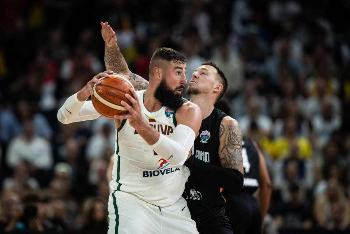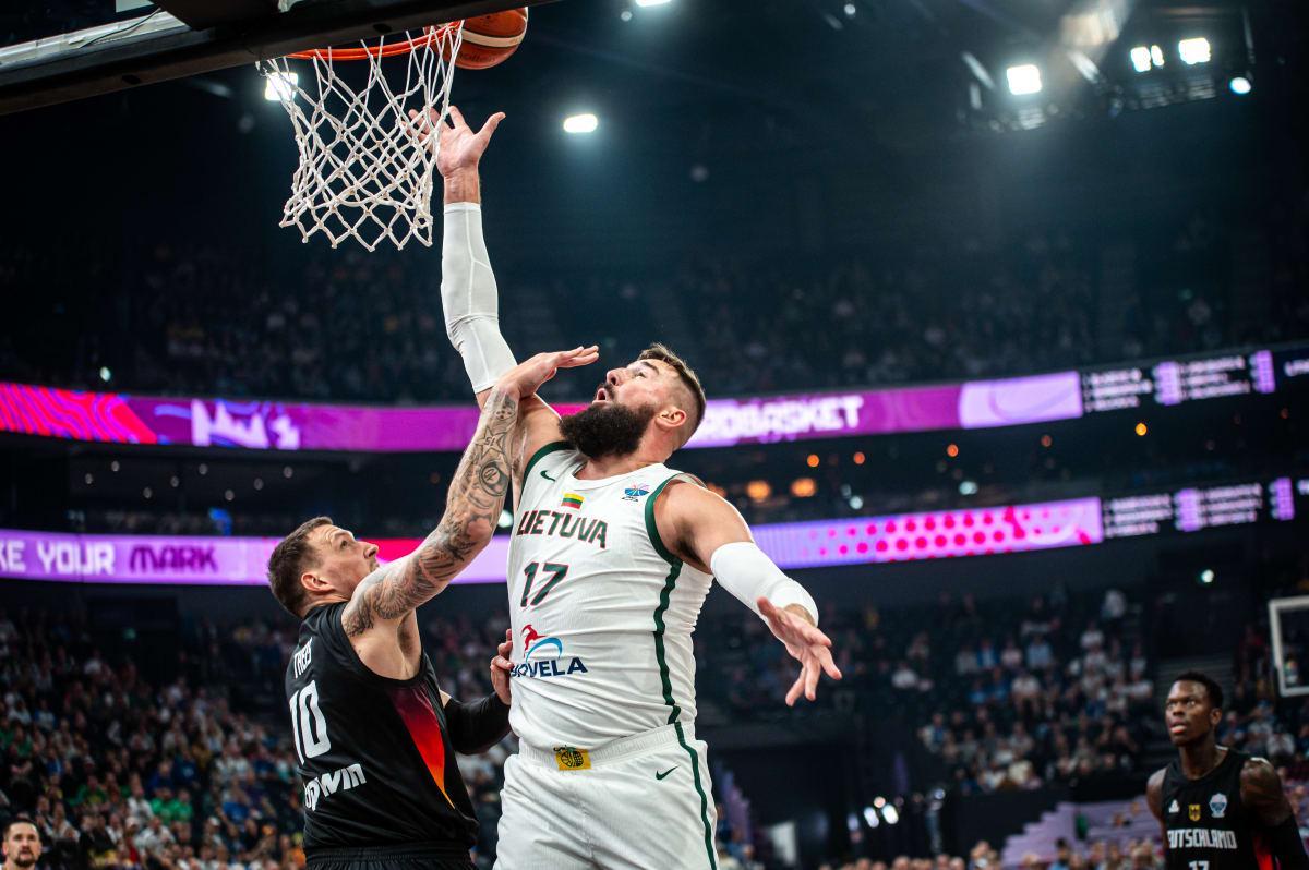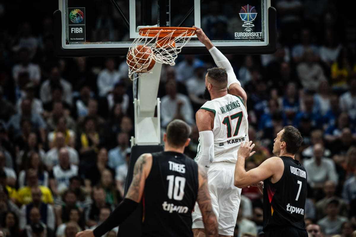 本场比赛中,立陶宛队的先发中锋约纳斯-瓦兰丘纳斯(Jonas Valanciunas)的表现并不能令人感到满意。瓦兰丘纳斯全场出场19分45秒,投篮8中5,罚球5中4,得到了14分4篮板1盖帽的数据,其中还包括了3个前场篮板,还有3次失误和4次犯规,正负值为-15。瓦兰丘纳斯在进攻端也算是具备一定的篮下威胁,能够承担起一定的篮下得分任务,然而他在其他方面的表现确实是差了一些。瓦兰丘纳斯在防守端的问题实在是太明显了,他在移动速度方面的短板不断被德国队外线球员利用。不夸张地说,德国队可能都不希望瓦兰丘纳斯因为犯规危机而不得不减少出场时间。至少在本场比赛中,瓦兰丘纳斯是绝对拖了球队后腿的。