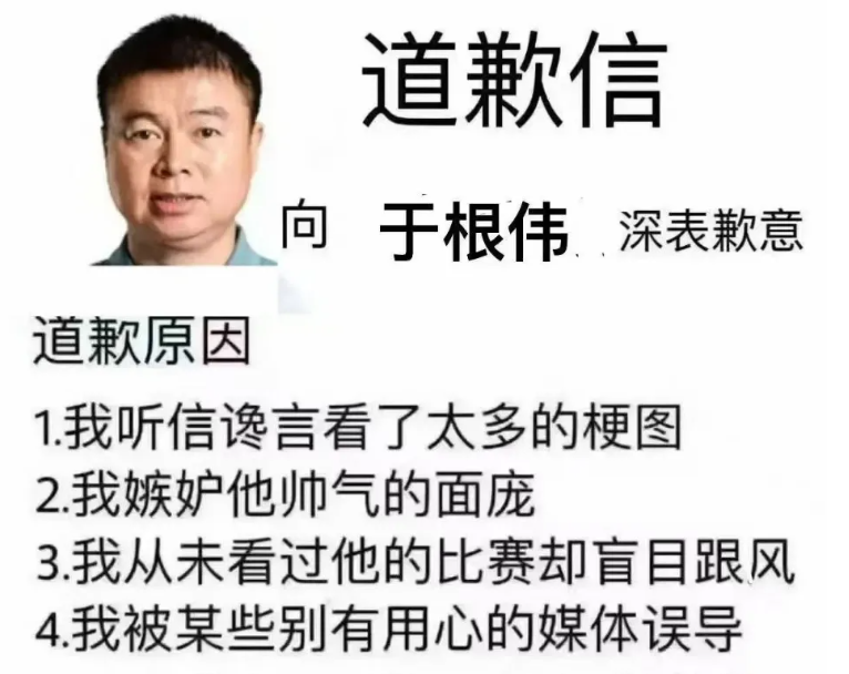 不过这次比赛有一个特点,那就是天津能在客场战平海港,申花和成都蓉城的球迷,甚至显得比天津球迷更加“热心”。赛后,有申花球迷制作“道歉信”,向于根伟表示歉意,并称之前因为错信“无良媒体”而黑过于根伟。